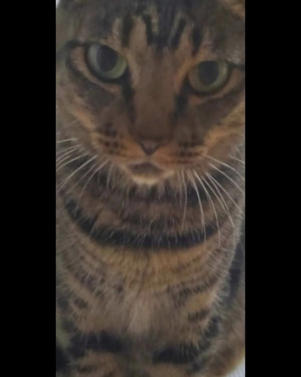 - キジトラ 立ち耳 しっぽ真っ直ぐ