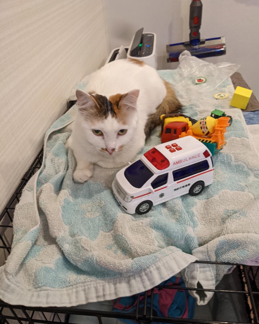 - 鼻が黒い 三毛猫 尻尾は黒く真っ直ぐ
