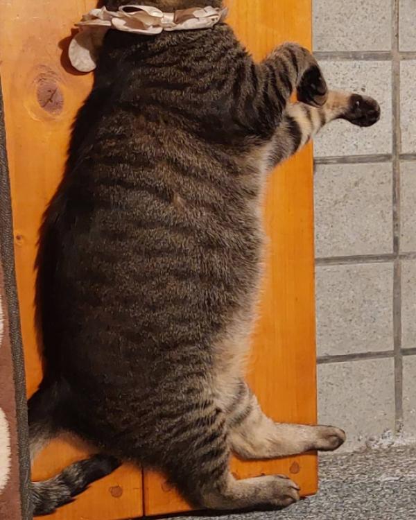 - 小柄、お腹がまんまるです
