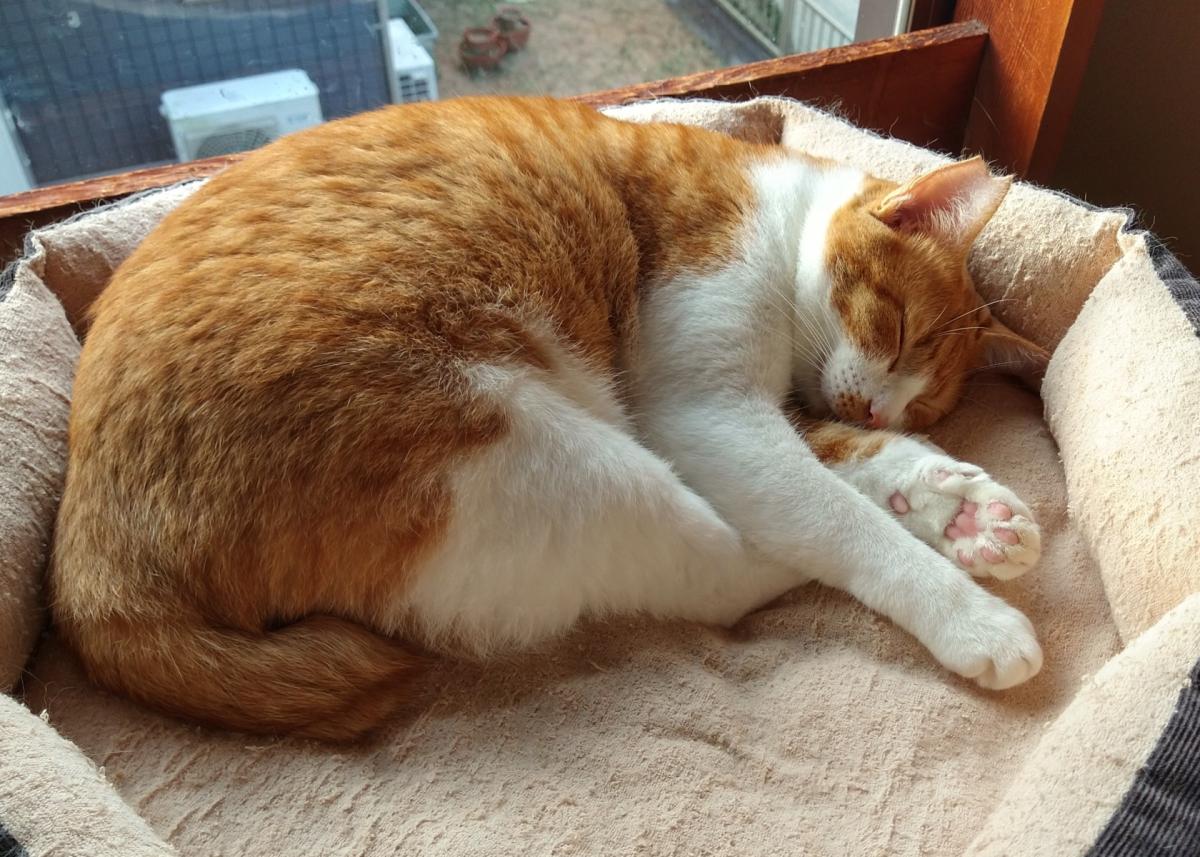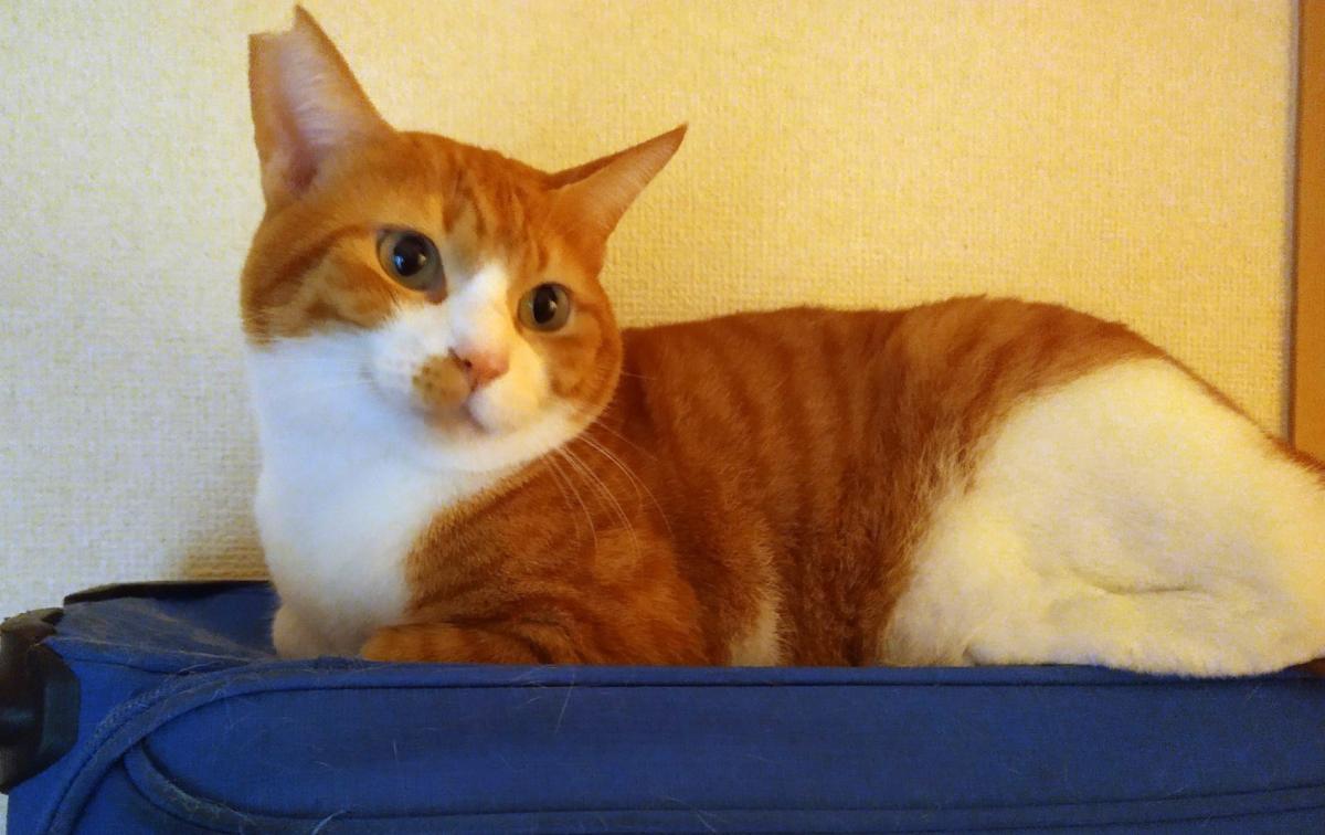 - 茶白(背中側茶色の縞)、右耳カット、尾は太く短い
