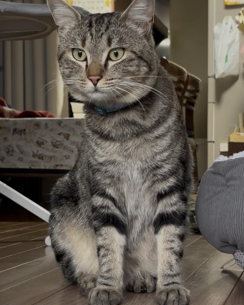 顔周りの毛が多く、体勢や角度によって見た目が変わって見えます。