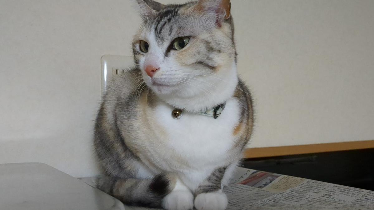 - サバトラベース(お腹は白色)に所々茶色っぽい毛が混じっています