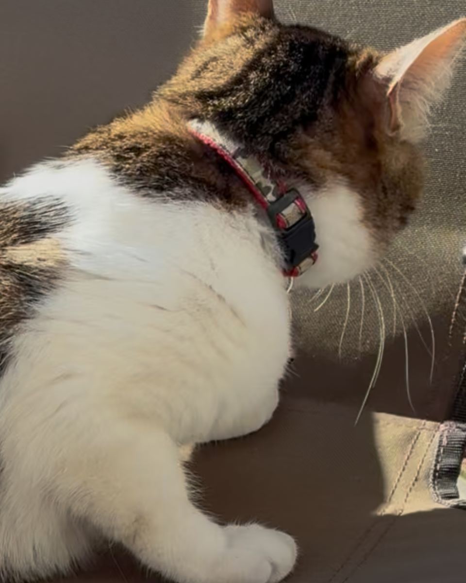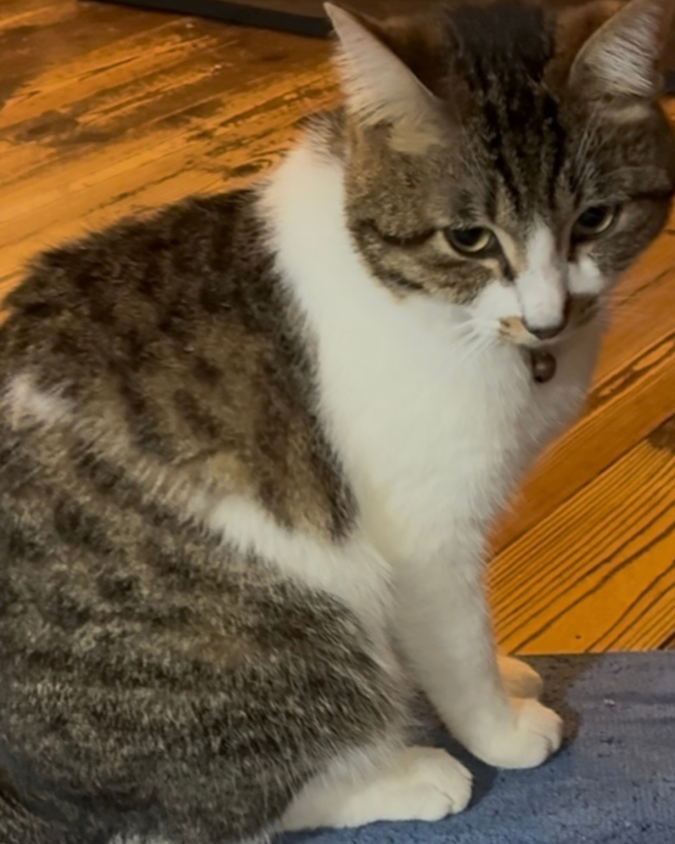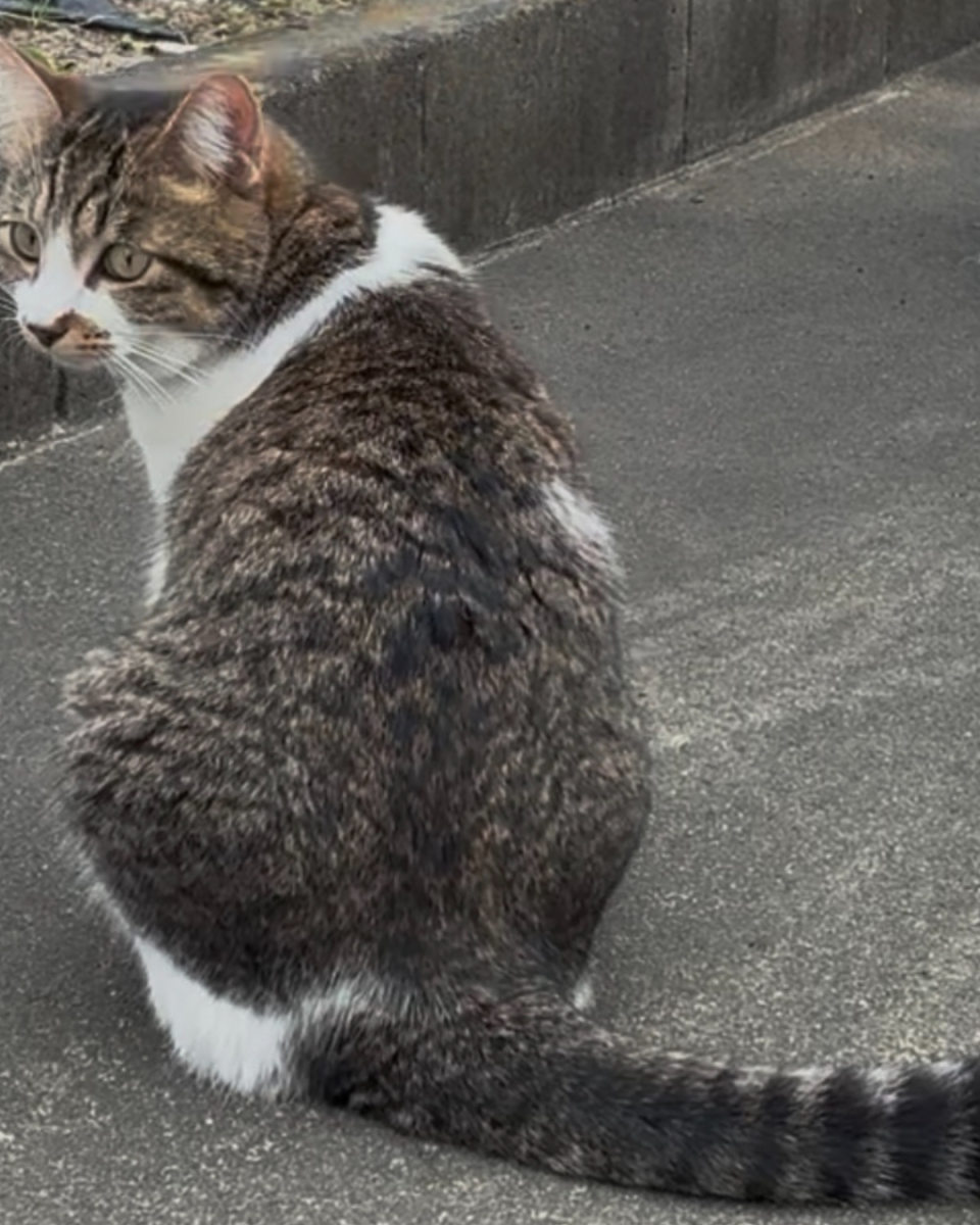 - 人懐こいメス 口の周りに模様 首輪に鈴と連絡先が付いている