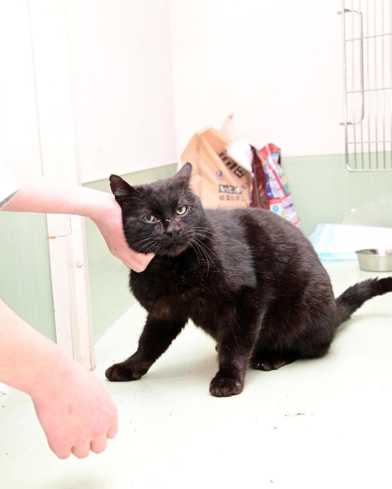 - 人慣れしている。食欲旺盛。下の犬歯2本無し。エイズウイルス陽性。