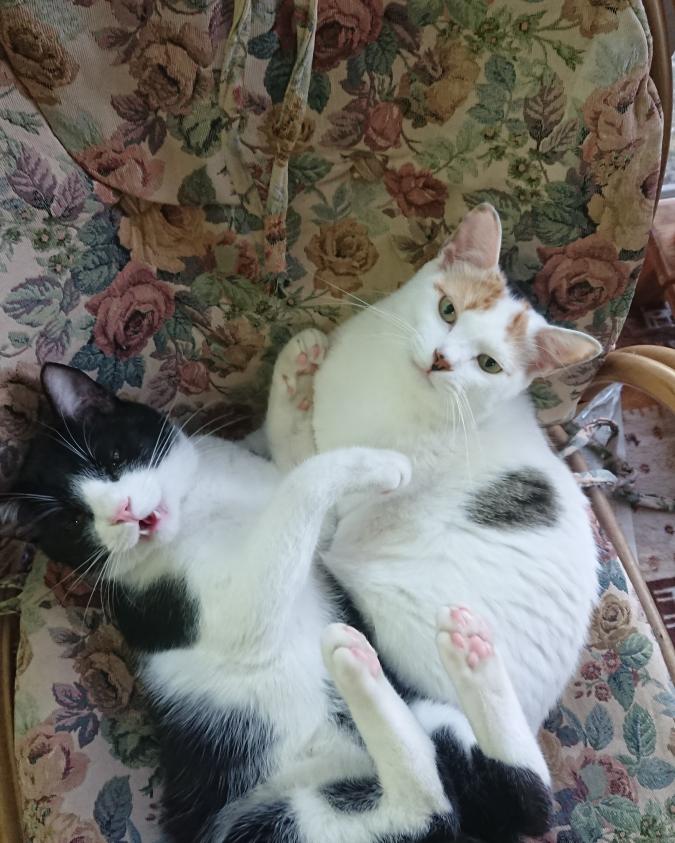 - 白色がメインで特に頭と尻尾が三毛柄です。