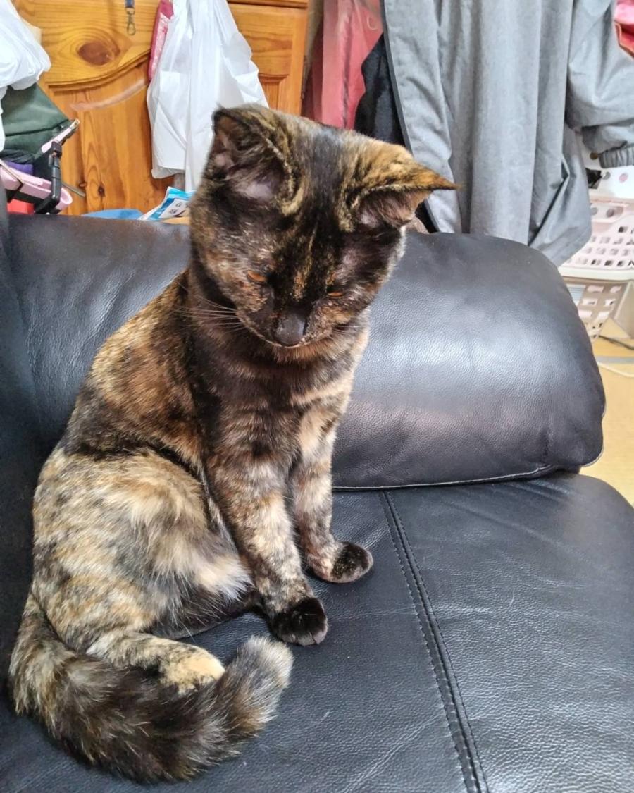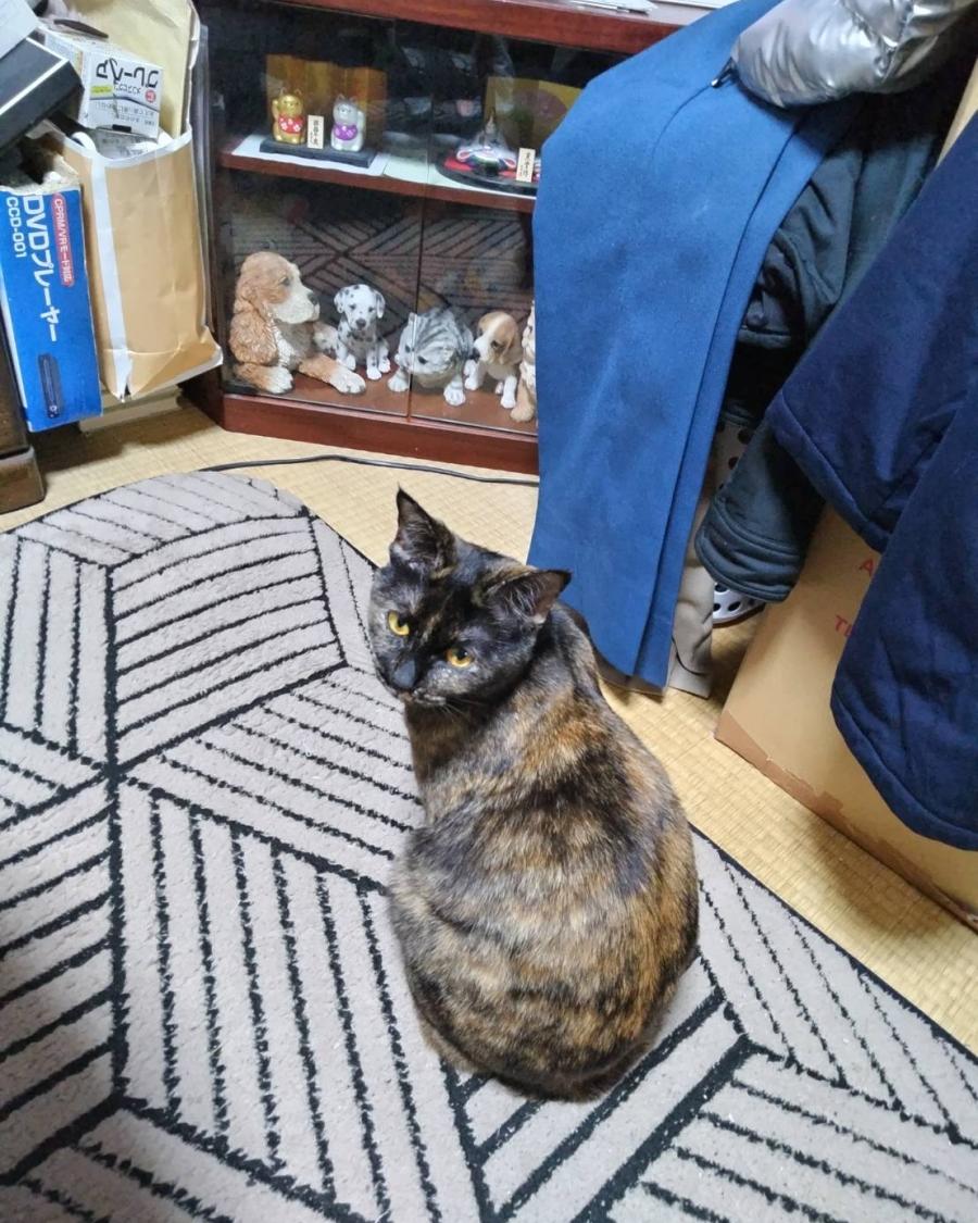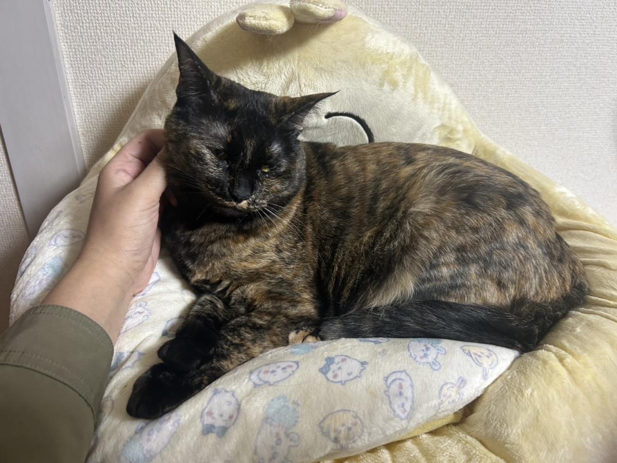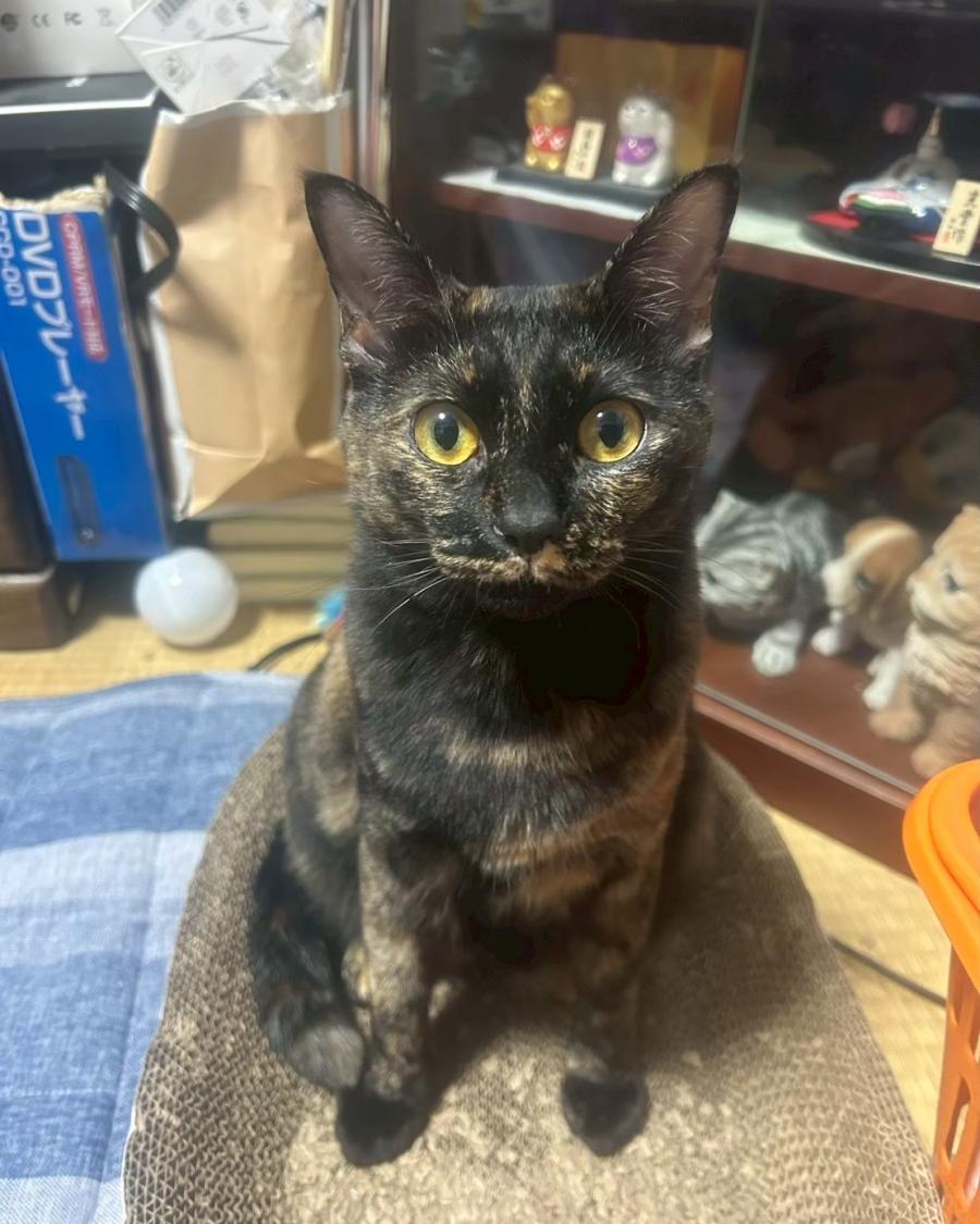 - サビ猫(黒メイン、おしりの方はよく見ると茶トラ模様)
