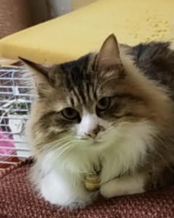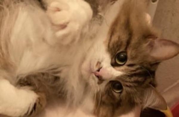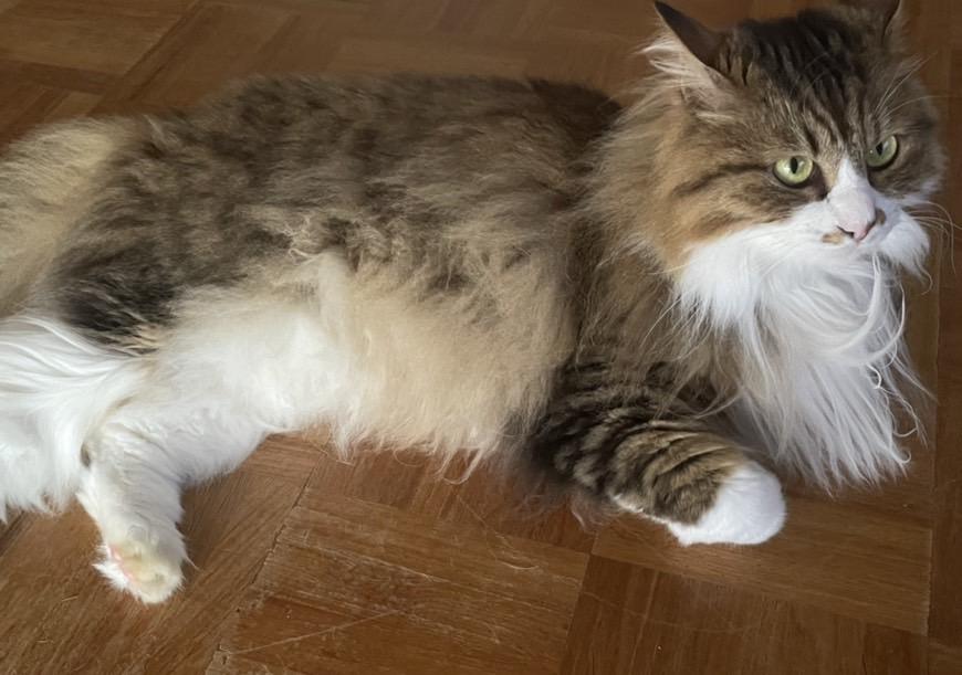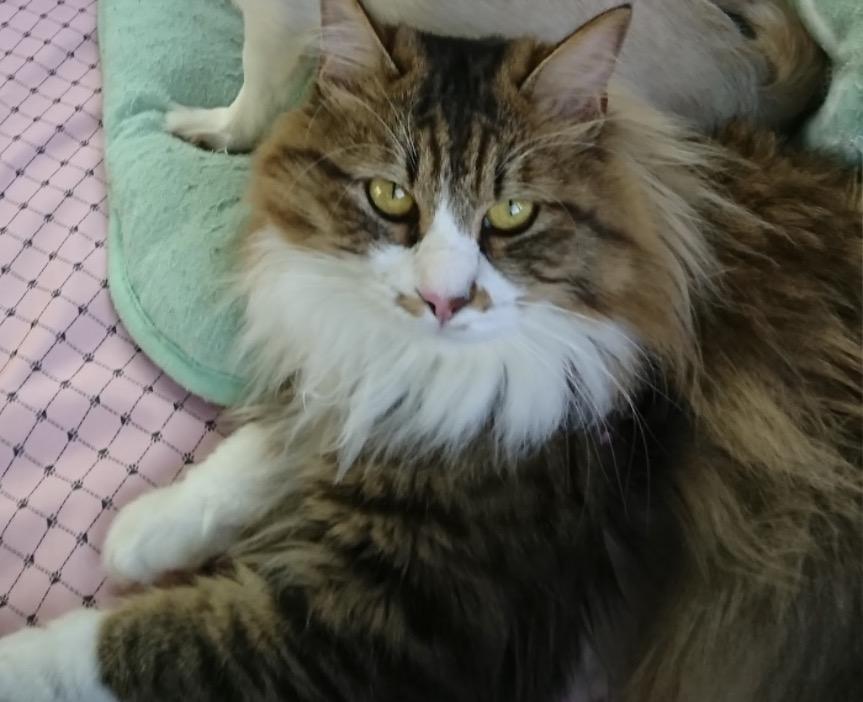 - シマシマトラ柄で毛がもふもふ長毛の大きい猫