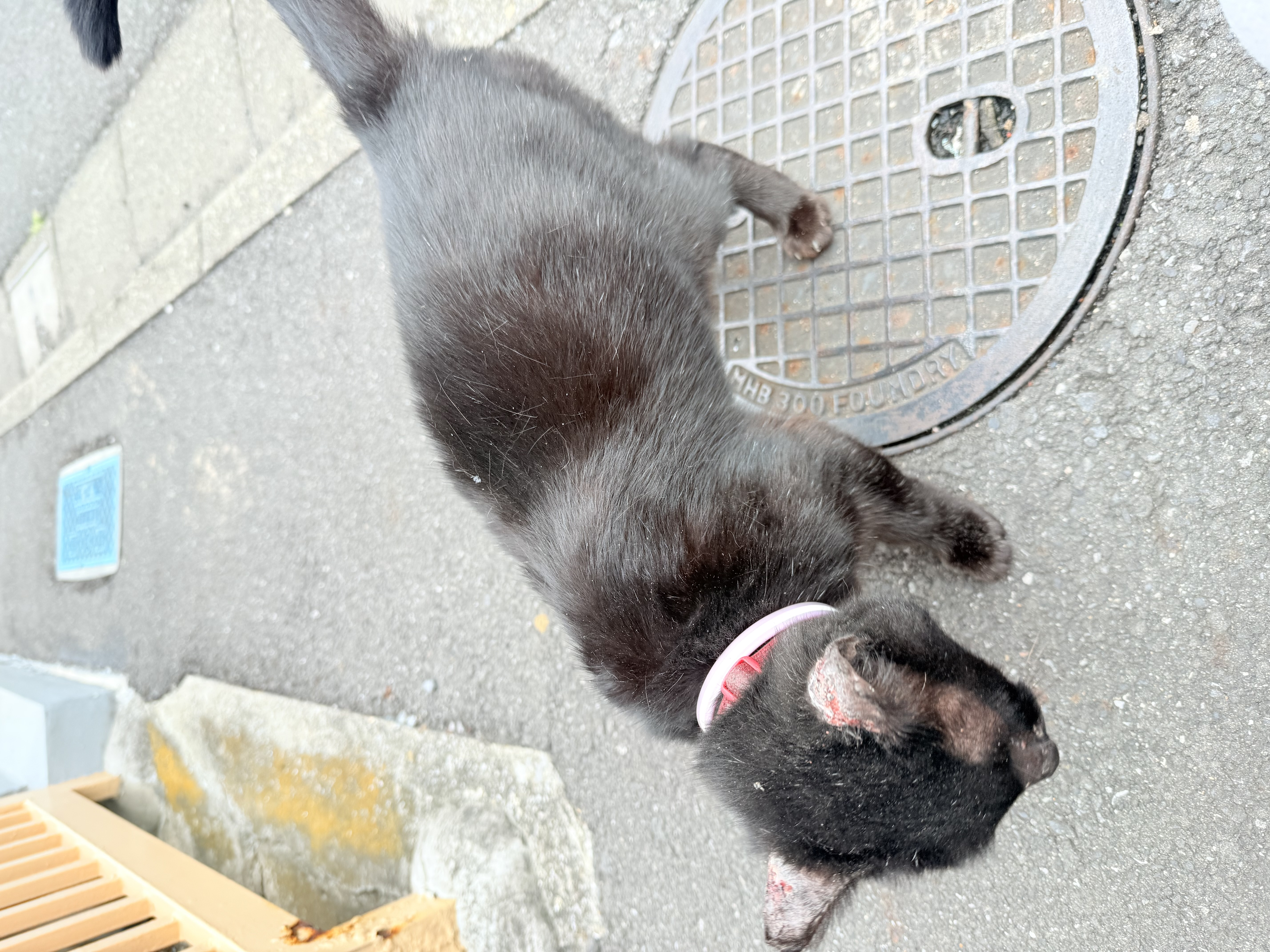 - 黒猫・お腹に数本だけ白の毛が生えてます