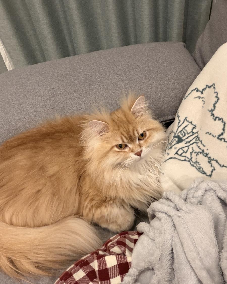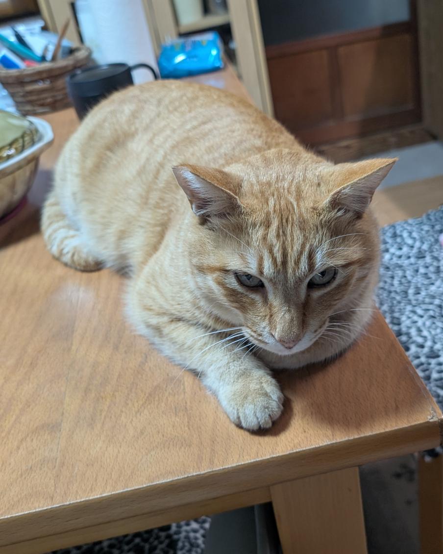 - 生後8ヶ月の去勢していない、しっぽが短くて丸いオス猫。
