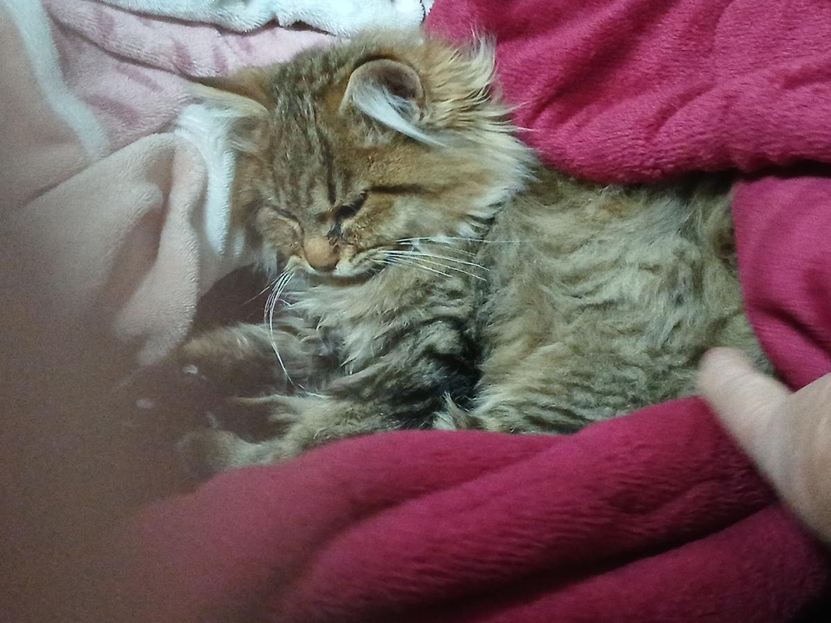- 毛が長毛で茶トラ柄のサイベリアン系雑種です
