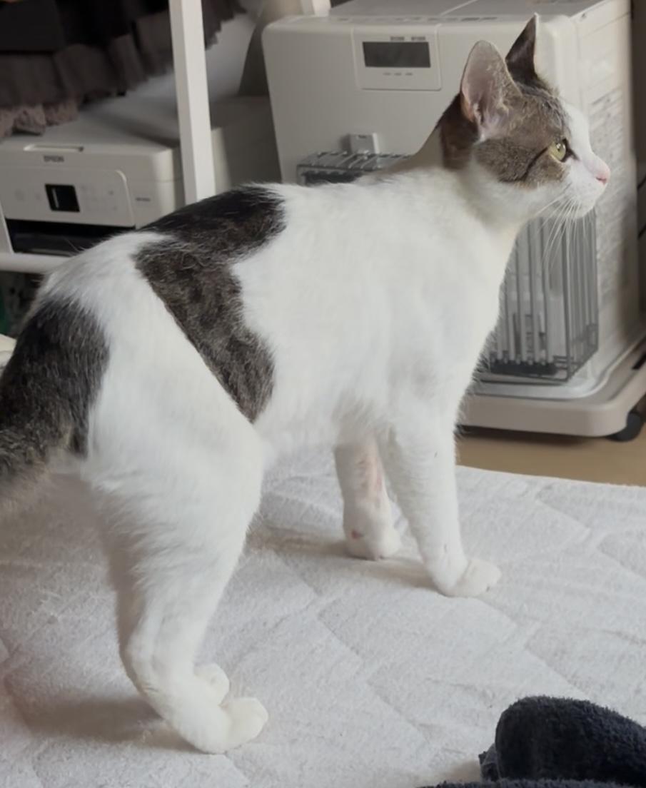 - 白い猫 小柄 鈴付きの首輪あり(とれたかも)