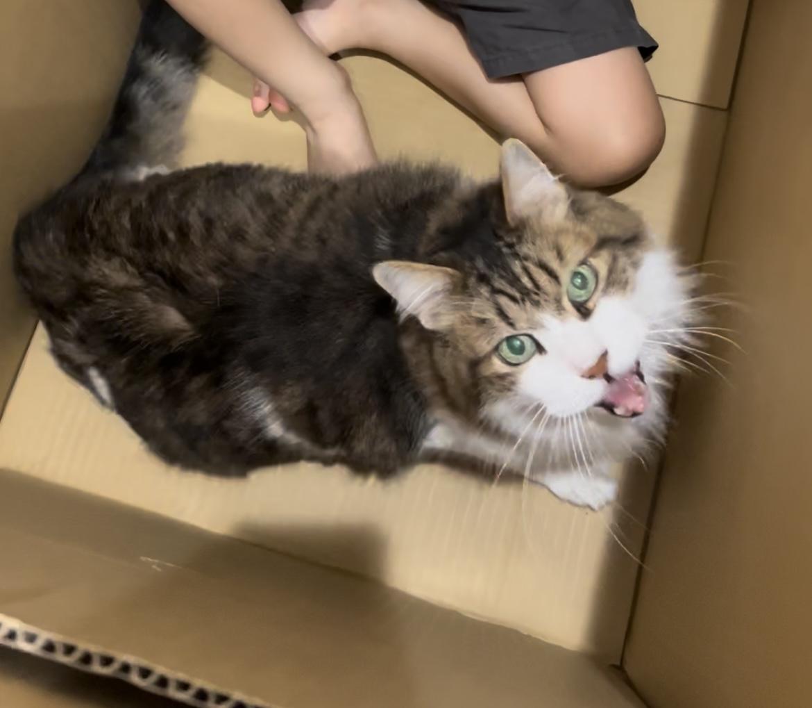 - 人懐っこく誰にでもスリスリして付いて歩く。鳴き声太く声が大きい。