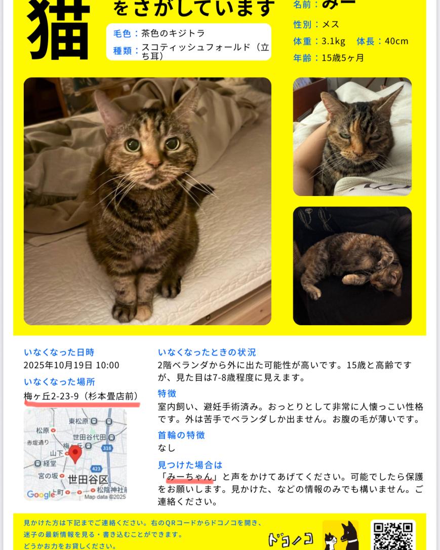 - 3キロ小型の猫、茶のキジトラ、首輪なし