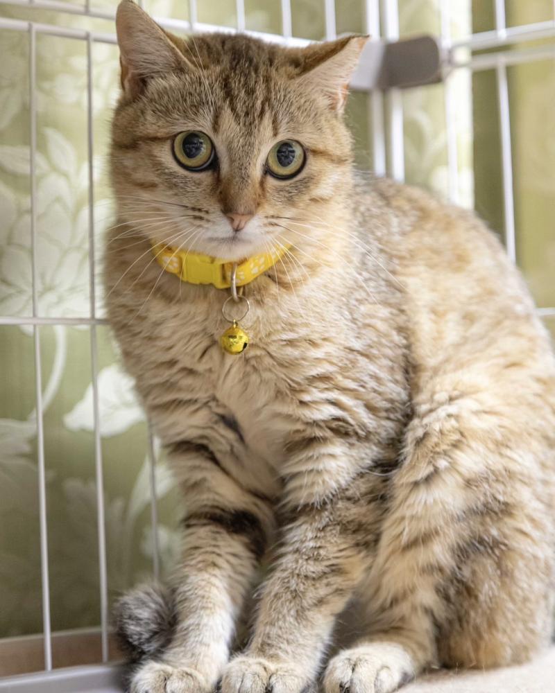 - 右耳カットあり、しっぽが長く先が黒い