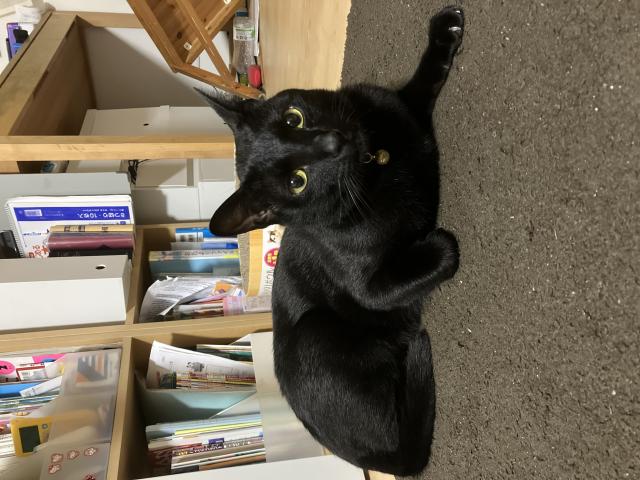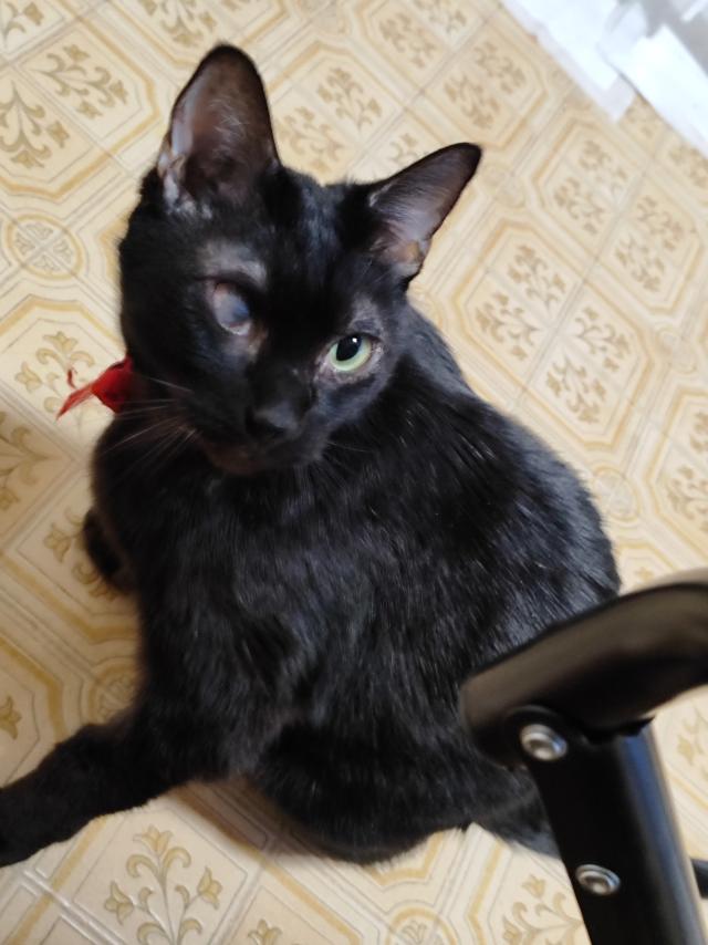 - 小柄なオスの黒猫 片目が白く濁ってる