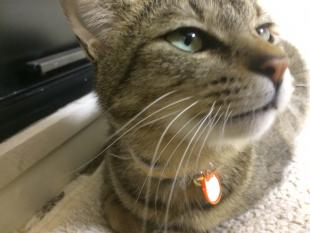 - キジトラのメス 黄色い首輪(白の縁取り、オレンジの名札未記入)