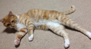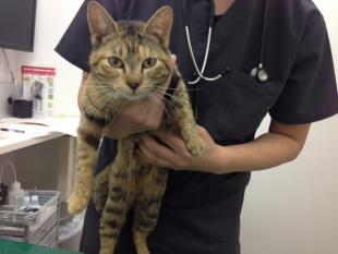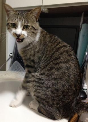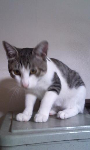 - キジトラで小さく、スリムでしっぽは長く先がかぎしっぽです。