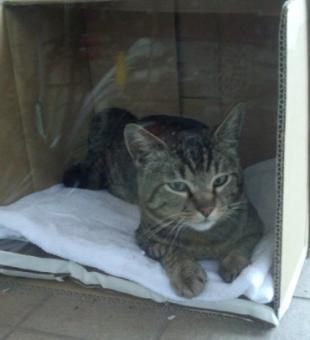 - 黒とグレーのキジトラです。黄緑の首輪とヒョウ柄のリードをしたまま居なくなりました。