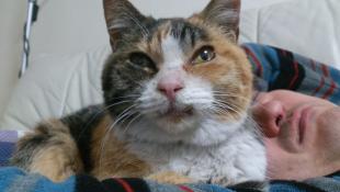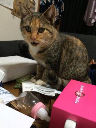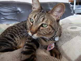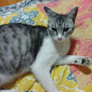 - 1歳半オス去勢済み 長尻尾の先だけ少し白 声が高くあまり鳴かない 右の腕部分黒で左手は白です。