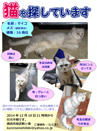 - いなくなった時にはオレンジ色の首輪をつけていました。