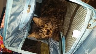 - 生後6ヶ月くらいのメス。ピンクの首輪が左腕に引っかかっていた状態でした。