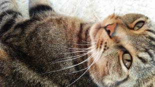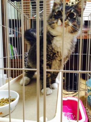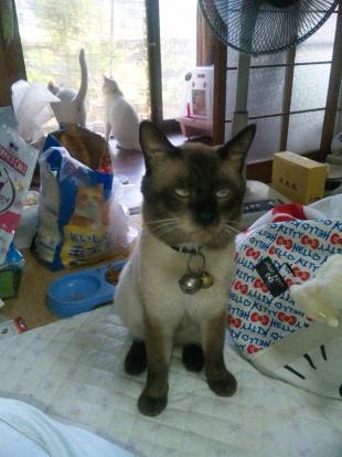 - シャム猫系で顔全体が黒、耳、手足が黒いしっぽは茶色ぽい体はベージュぽい男の子です 夏になると変わる顔の回りが少しずつうすくなる