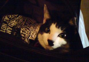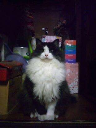 - 去勢済み3才(♂)首輪なし。黒白長毛種の雑種で体格は大きめ尻尾長くフサフサしている。