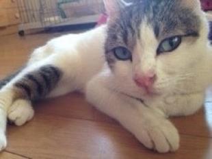- サバトラ白 黒い首輪 短い尻尾