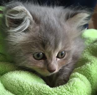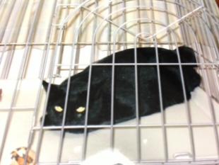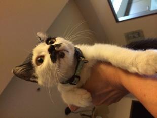 - 白黒のチビ猫で鼻の下はヒゲのように黒くなっています。
