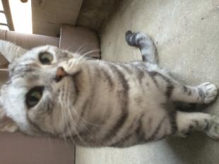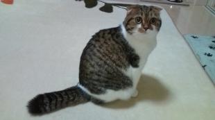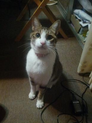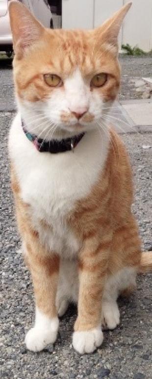 - 茶トラ白猫、非常に人懐こいく大きな猫でプタプお腹