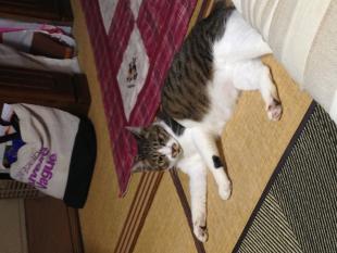 - キジトラ お腹から足は白 前左足のみ黒い模様がある