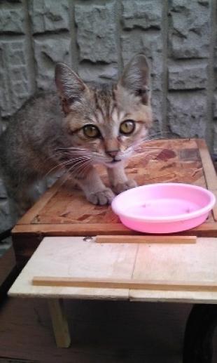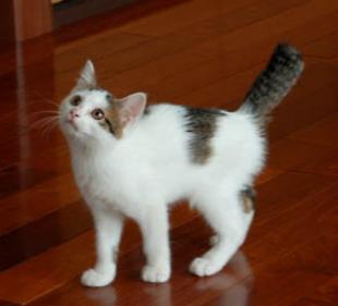 - サビ柄、メス、小柄、尻尾長く真っ直ぐ