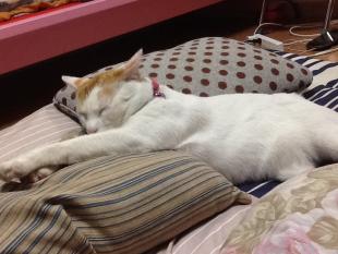 - 首と下腹の毛が禿げてる。メス避妊済み。