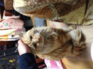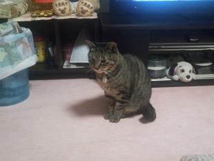 - 茶トラのオスで手足はやや短め、尻尾も短い、約7キロぐらい、好奇心旺盛な性格であまり恐がりではないです。名前呼ぶと反応します。
