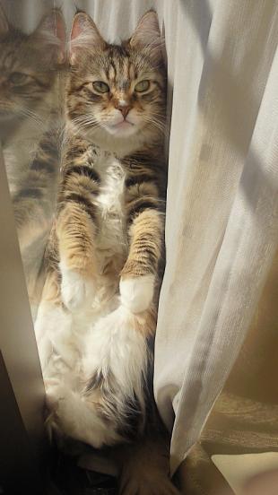 - 茶色虎柄襟足手足真っ白尻尾がタヌキのようにふさふさ大きい