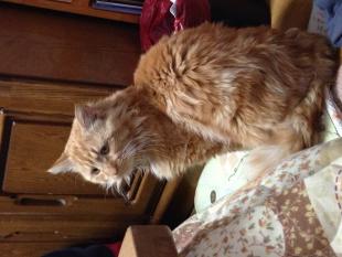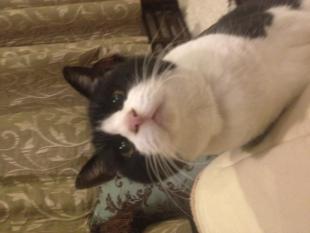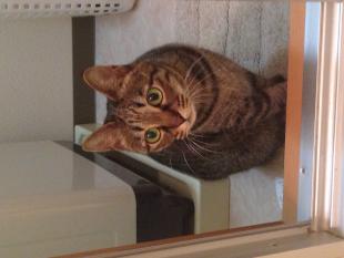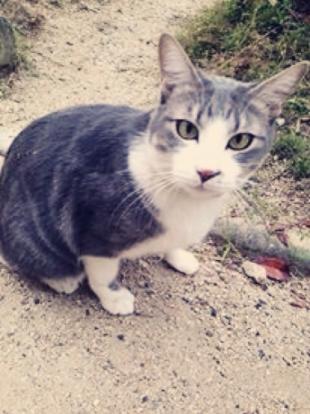 - 避妊済メス、もうすぐ5才、4.3kg、白地に焦茶のサバトラ柄。