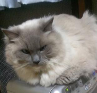 - 首輪にマイクロチップ装着。首輪は豹柄。毛に埋まってるけど。ラグドールだけど、やんちゃ。たまに暴走。そして臆病。