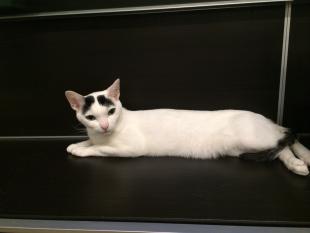 - ほぼ全身白でおでこと尻尾が黒