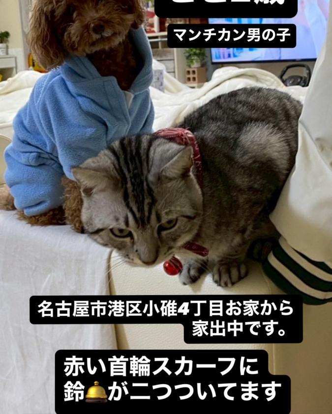 迷子猫情報 探しています2025-08-19 08:59:25 投稿者 mrmmr6113 さん 迷子になった猫のお名前 ビビ ちゃん 迷子になった場所 愛知県名古屋市港区小碓4丁目 周辺 特徴 赤い首輪スカーフしてます鈴も二つついてます尻尾が長いです 迷子になった日時 2025.8.17 体毛の色 白とシルバー 瞳の色 黒 身体の大きさ 普通です その他の特徴・備考 赤い首輪スカーフしてます 鈴も二つついてます 閲覧者へ向けてのメッセージ 些細な情報でもいいので是非 見かけたらご連絡下さい。 よろしくお願いします。 この情報を拡散する ポストする シェアする LINEを送る メールを送る このコメント欄をメールで受け取る コメントフォーム お名前※必須 メールアドレス※本記事の投稿者(xxxxx さん)にのみ公開されます。 画像 タイトル※必須 メッセージ※必須 ※投稿後は編集・削除はできません。よくご確認の上、投稿して下さい。