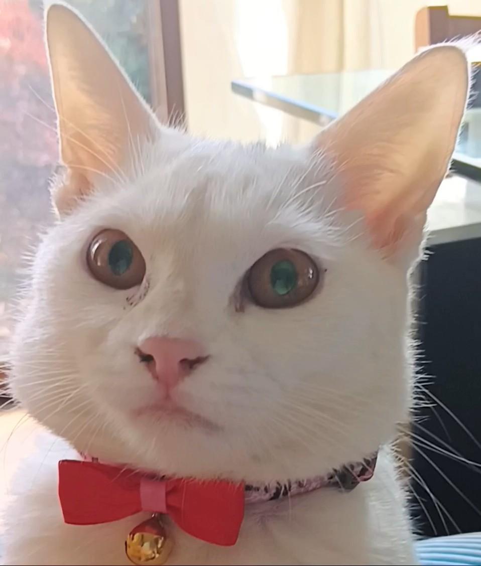- 外れていなければ、赤いリボンの首輪をしています。