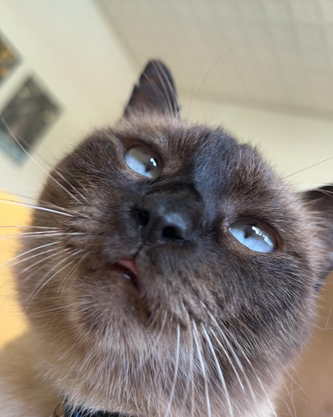 - シャムっぽい感じです。首輪だけ落ちていたのが見つかりました。なので首輪は付けていません。少しビビりなので、初対面の人に近寄ることはあまりないです。ご飯が大好き甘えん坊約10歳。