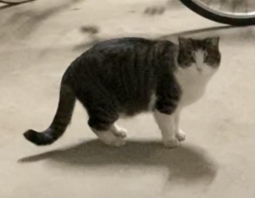 - 尾はシマシマです。オス、3歳くらいです。去勢済。綺麗なハチワレです。人馴れはしていません。