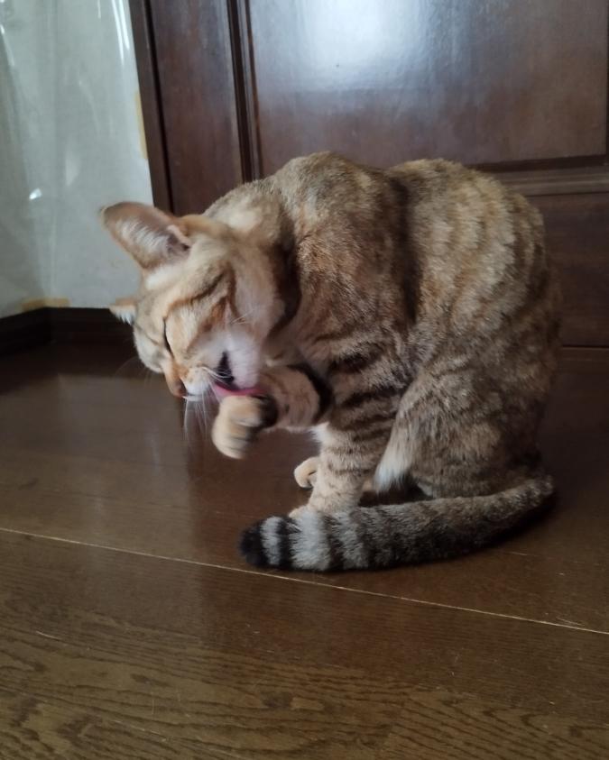 - 柄はキジトラですが、一般的なものより少し色が明るく、麦わらに近いです。