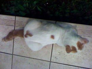 - オス白、2歳、尻尾薄茶トラ、首輪蛍光黄緑
