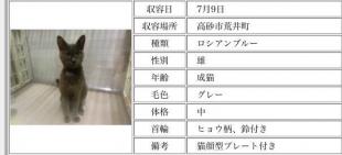 迷子猫情報 探しています2014-10-21 10:28:28 投稿者 ひじり さん 迷子になった猫のお名前 レオ ちゃん 迷子になった場所 兵庫県加古川市平岡町一色 周辺 特徴 長いシッポ 迷子になった日時 2014年10月2日深夜 体毛の色 グレー 瞳の色 緑 身体の大きさ 少し太っていたけど現在は痩せているかもしれません その他の特徴・備考 とても怖がりなので 知らない人には近づかないかもしれません。 閲覧者へ向けてのメッセージ 些細な事でも構いませんので 情報を お願いいたします。 この情報を拡散する ポストする シェアする LINEを送る メールを送る コメント もう見つかってますか? 2015-07-11 08:31:26びぃ ツイッターで回ってきたのですが、まだ見つかってないのであれば可能性はあるのではないかとおもってコメントさせていただきました。収容期間が明日までなので確認するのであれば早めに行くことをお勧めいたします。 このコメント欄をメールで受け取る コメントフォーム お名前※必須 メールアドレス※本記事の投稿者(xxxxx さん)にのみ公開されます。 画像 タイトル※必須 メッセージ※必須 ※投稿後は編集・削除はできません。よくご確認の上、投稿して下さい。